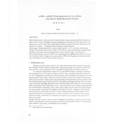 Makin penting dan makin potensiiI suatu instalasi maka syarat pendirian instalasi tersebut makin rumit, sehingga kemanan-pengamanan terhadap instalasi, personil yang bekerja dan publik serta alam lingkungan disekitar instalasi jauh-jauh sebelumnya sudah harus disadari - dimengerti serta diketahui keandalannya. Sehubungan dengan pendirian instalasi nuklir, jenis PLTN. Air Berat Bertekanan Tinggi (Pressurized Heavy Water Reactor, PHWR.), akan dibicarakan masalah-masalah sistim keamanan dan teknologi serta evolusi sistim isolasi (co tainment). Sistim Pendinginan Darurat (SPD) serta bagaimana kemungkinan dan akibat dari suatu kecelakaan nuklir dengan dan tanpa adanya SPD atau fungsinya merupakan salah satu pembahasan utama dalam kertas karya ini.