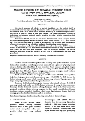 Sugiarmadji HPS and Setiadi (2009) Analisis Defleksi Dan Tegangan Struktur Roket Rx-320 Pada Waktu Handling Dengan Metode Elemen Hingga (Fem). Jurnal Teknologi Dirgantara, 7 (2). pp. 112-119. ISSN 1412-8063