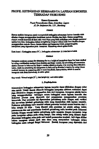 Slamet Syamsudin (2009) Profil Ketinggian yang sebenarnya Lapisan Ionosfer terhadap Frekuensi. In: Ionosfer dan Aplikasinya. Massma Sikumbang, Jakarta, pp. 39-47.