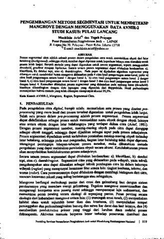 Muchlisin Arief and Teguh Prayogo (2011) Pengembangan Metode Segmentasi untuk Mendeteksi Mangrove dengan Menggunakan Data AVNIR-2 Studi Kasus : Pulau Lancang. Prosiding Seminar Nasional Pemanfaatan Data Penginderaan Jauh Untuk Pembangunan Nasional. pp. 119-128.