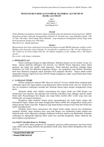 Djuhana and Hery Adrial and Dodi Rusjadi TE. (2011) Pengukuran Kekuatan Impak Material Alumunium Hasil Las SMAW. Prosiding SIPTEKGAN XV-2011 Seminar Nasional IPTEK Dirgantara XV Tahun 2011. pp. 62-69. ISSN 978-979-1458-51-1