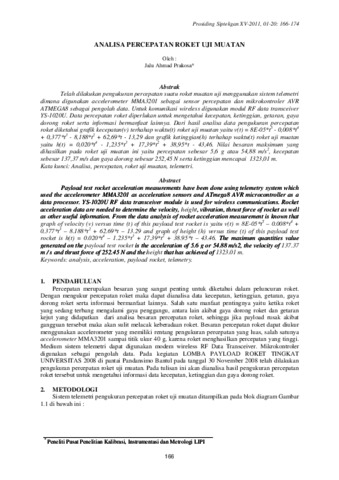| Uncontrolled Keywords: | Analisa, percepatan, roket uji muatan, telemetri. |