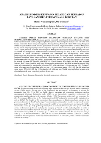 1997). Tujuan penelitian ini adalah untuk mengukur IKM layanan Biro Perencanaan (BP) terhadap unit kerja