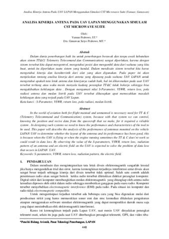 Dalam dunia penerbangan baik itu untuk penerbangan berawak dan tanpa awak kebutuhan akan sistem TT&C( Telemetry Telecomand dan Communication) sangat diperlukan, karena dengan sistem tersebut kita dapat mengontrol, mengetahui posisi dan mengambil data dari wahana yang kita buat, untuk itu diperlukan suatu sistem yang handal. Dalam mendisain sistem tersebut kita harus mengetahui kinerja dan karakteristik dari alat yang akan digunakan. Pada paper ini akan menjelaskan tentang analisa kinerja dari antena yang dipasang pada wahana UAV LAPAN untuk mengetahui apakah tata letak antena dan kinerjanya sudah baik, hal ini dikarenakan pada saat UAV tersebut terbang atau waku mesin menyala kadang perangkat TT&C tidak bekerja sehingga bisa mengakibatkan kehilangan data . Dengan mengamati nilai S-Parameter, VSWR, return loss, pola radiasi antena dan medan listrik pada UAV tersebut diharapkan apat memecahkan masalah kehilangan data yang terjadi pada UAV Lapan.