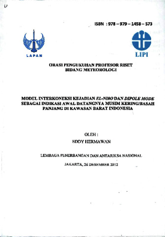 eddy Hermawan (2012) Model Interkoneksi Kejadian El Nino dan Dipole Mode sebagai Indikasi Awal Datangnya Musim Kering/Basah Panjang di Kawasan Barat Indonesia. LAPAN, Jakarta.