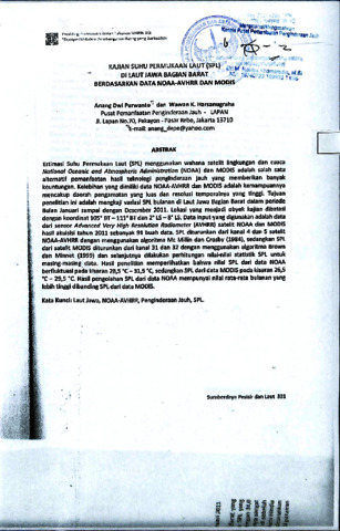 | Uncontrolled Keywords: | Laut jawa, NOAA-AVHRR, Penginderaan Jauh, SPL |