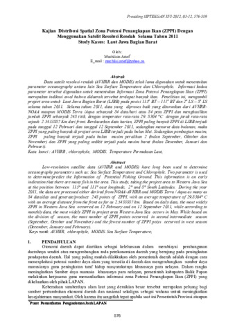 Muchlisin Arief (2012) Kajian Distribusi Spatial Zona Potensi Penangkapan Ikan (ZPPI) dengan Menggunakan Satelit Resolusi Rendah Selama Tahun 2011 Study Kasus: Laut Jawa Bagian Barat. Prosiding SIPTEKGAN XVI-2012 Seminar Nasional IPTEK Dirgantara XVI Tahun 2012. pp. 576-589.