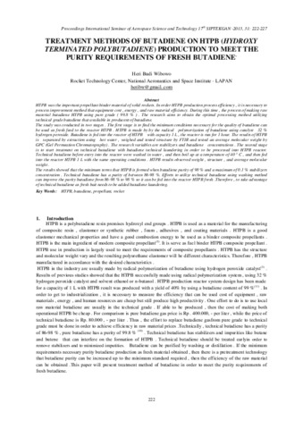 Heri Budi Wibowo (2013) Treatment Methods Of Butadiene On HTPB (Hydroxy Terminated Polybutadiene) Production To Meet The Purity Requirements Of Fresh Butadiene. Proceedings SIPTEKGAN XVII-2013. pp. 222-227.