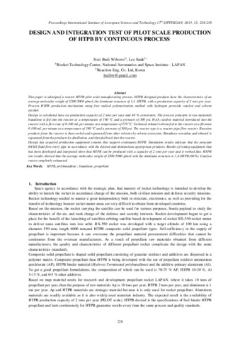 Heri Budi Wibowo and Lee Suuk (2013) Design And Integration Test Of Pilot Scale Production Of HTPB By Continuous Process. Prosiding SIPTEKGAN XV-2011 Seminar Nasional IPTEK Dirgantara XV Tahun 2011. pp. 228-238.
