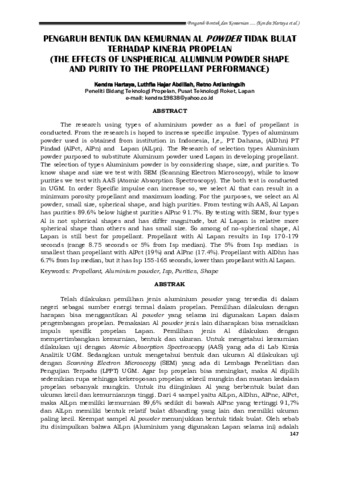| Uncontrolled Keywords: | Propelan, Aluminium powder, Isp, Kemurnian, Bentuk |