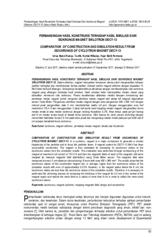 Kudus, Abdul Idrus and Taufik, Taufik and Wibowo, Kurnia and Permana, Sidik Fajar (2017) PERBANDINGAN HASIL KONSTRUKSI TERHADAP HASIL SIMULASI DARI ISOKRONUS MAGNET SIKLOTRON DECY-13. Ganendra, 20 (2). pp. 83-90. ISSN p-ISSN: 1410-6957, e-ISSN: 2503-5029
