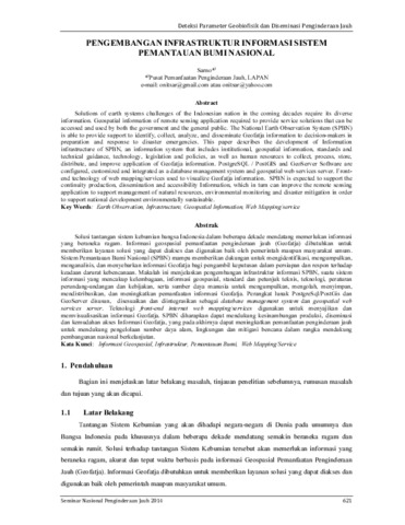 Sarno (2014) Pengembangan Infrastruktur Informasi Sistem Pemantauan Bumi Nasional. Prosiding Seminar Nasional Penginderaan Jauh 2014. pp. 621-630.