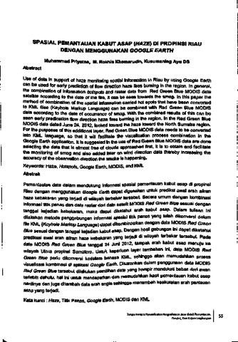 | Uncontrolled Keywords: | Haze, Titik Panas, Google Earth, MODIS dan KML |