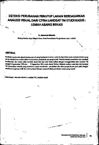 R. Johannes Manalu (2014) Deteksi Perubahan Penutup Lahan Berdasarkan Analisis Visual dari Citra Landsat TM Studi Kasus : Lemah Abang Bekasi. Crespent Press, Bogor.