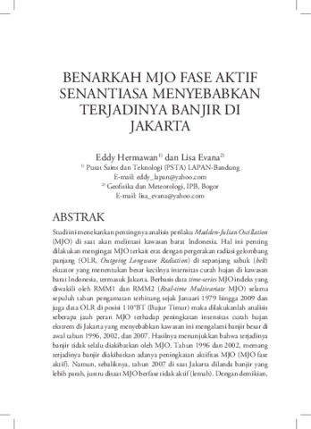 Eddy Hermawan and Lisa Evana (2015) Benarkah MJO Fase Aktif Senantiasa Menyebabkan Terjadinya Banjir di Jakarta. IPB Press, Bogor.