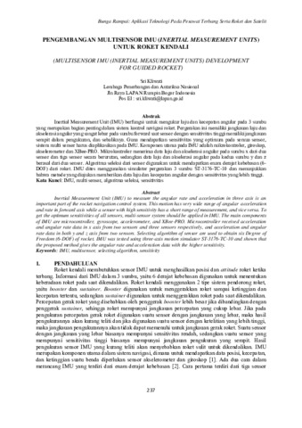 Sri Kliwati (2015) Pengembangan Multisensor IMU (Inertial Measurement Units) untuk Roket Kendali. In: Bunga Rampai Hasil Litbangyasa : Teknologi Pada Pesawat Terbang, Roket, dan Satelit Th 2015. Indonesia Book Project/ Media Kita Group anggota IKAPI, Jakarta, pp. 237-244. ISBN 978-602-70353-8-6 I
