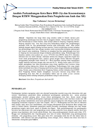 Dipo Yudhatama and Suryono Herlambang (2015) Analisis Perkembangan Kota Baru BSD City dan Kesesuaiannya dengan RTRW Menggunakan Data Penginderaan Jauh dan SIG. Prosiding Pertemuan Ilmiah Tahunan XX dan Kongres VI Masyarakat Ahli Penginderaan Jauh Indonesia (MAPIN). pp. 904-913.