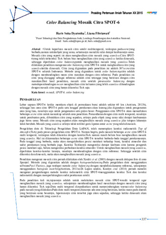 Haris Suka Dyatmika and Liana Fibriawati (2015) Color Balancing Mosaik Citra SPOT-6. Prosiding Pertemuan Ilmiah Tahunan XX dan Kongres VI Masyarakat Ahli Penginderaan Jauh Indonesia (MAPIN). pp. 337-342.