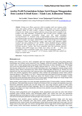 pertumbuhan kelapa sawit dan menghasilkan profil pertumbuhannya dengan menggunakan data satelit Landsat. Area kajian adalah PTPN 13, Perkebunan kelapa sawit di Pelaihari di Kabupaten Tanah Laut Kalimantan Selatan. Data utama yang digunakan adalah Landsat 8 dan data pendukung LS7 dan SPOT 6. Analisa dilakukan dengan melakukan