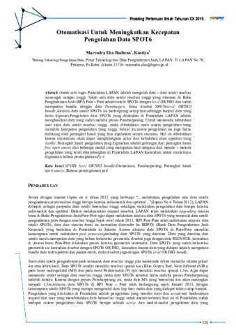 Marendra Eko Budiono and Kustiyo (2015) Otomatisasi untuk Meningkatkan Kecepatan Pengolahan Data SPOT6. Prosiding Pertemuan Ilmiah Tahunan XX dan Kongres VI Masyarakat Ahli Penginderaan Jauh Indonesia (MAPIN) 2015. pp. 538-544.