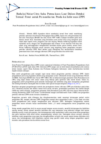 Rossi Hamzah (2015) Reduksi Noise Citra Suhu Permukaan Laut dalam Deteksi Termal Front untuk Pemanfaatan Produksi Informasi ZPPI. Prosiding Pertemuan Ilmiah Tahunan XX dan Kongres VI Masyarakat Ahli Penginderaan Jauh Indonesia (MAPIN). pp. 701-710.