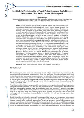 Teguh Prayogo (2015) Analisis Pola Perubahan Garis Pantai Pesisir Semarang dan Sekitarnya Berdasarkan Citra Satelit Landsat Mulitemporal. Prosiding Pertemuan Ilmiah Tahunan XX dan Kongres VI Masyarakat Ahli Penginderaan Jauh Indonesia (MAPIN). pp. 753-763.