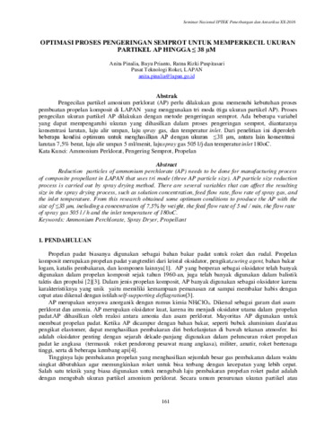 pengecilan ukuran partikel AP dilakukan dengan metode pengeringan semprot. Ada beberapa variabel