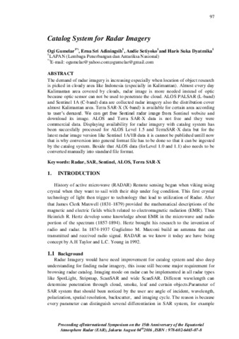 commercial data. Displaying availability for radar imagery with catalog system has been succesfully processed for ALOS Level 1.5 and TerraSAR-X data but for the latest radar image version like Sentinel 1A/1B data it is cannot be published untill now