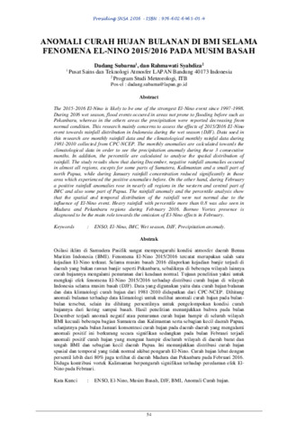| Uncontrolled Keywords: | ENSO, El-Nino, Musim Basah, DJF, BMI, Anomali Curah hujan |
