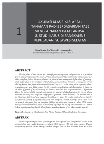Heru Noviar and Wawan K. Harsanugraha (2017) Akurasi Klasifikasi Areal Tanaman Padi Berdasarkan Fase Menggunakan Data Landsat 8, Studi Kasus di Pangkajene Kepulauan, Sulawesi Selatan. IPB Press, Bogor.