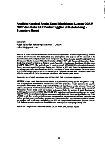 | Uncontrolled Keywords: | angin zonal; angin meridional; CCAM-NWP; EAR; korelasi-regresi |
