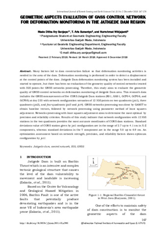 Made Ditha Ary Sanjaya and T. Aris Sunantyo and Nurrohmat Widjajanti (2018) Geometric Aspects Evaluation of GNSS Control Network for Deformation Monitoring in The Jatigede Dam Region. International Journal of Remote Sensing and Earth Sciences, 15 (2). pp. 167-176. ISSN 0216-6739