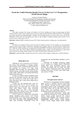 Lasinta Ari Nendra Wibawa (2018) Desain dan Analisis Kekuatan Rangka Tricycle Landing Gear UAV Menggunakan Metode Elemen Hingga. Jurnal Ilmiah Teknik Mesin Mechanical, 9 (2). pp. 34-73. ISSN 2087 1880