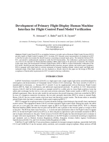 Novita. Atmasari and Sayr Bahri and E. B. Jayanti (2021) Development of Primary Flight Display Human Machine Interface for Flight Control Panel Model Verification. The 8th International Seminar on Aerospace Science and Technology – ISAST 2020, 2366. pp. 1-15.