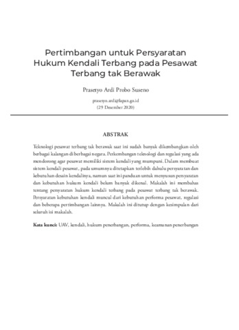 Prasetyo Ardi Probo Suseno (2021) Pertimbangan untuk Persyaratan Hukum Kendali Terbang pada Pesawat Terbang tak Berawak. In: Bunga Rampai Inovasi Teknologi Penerbangan dari Pustekbang untuk Indonesia. IPB Press, pp. 21-25. ISBN 978-623-256-808-2