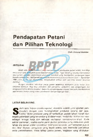 Iskandar, Untung Pendapatan petani dan pilihan teknologi. Majalah BPPT. pp. 103-109.