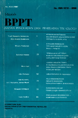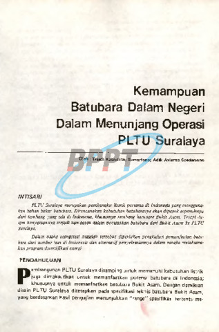 Kaswanto, Triadi and Sumartono, . and Soedarsono, Adik Avianto (1987) Kemampuan batubara dalam negeri dalam menunjang operasi PLTU Suralaya. Majalah BPPT (XVII): 1. pp. 1-15. ISSN 0216 - 6569