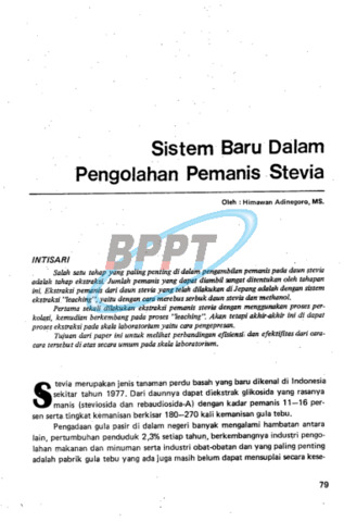 Adinegoro, Himawan (1987) Sistem baru dalam pengolahan pemanis stevia. Majalah BPPT (XVII): 7. pp. 79-85. ISSN 0216-6569