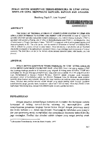 Teguh P., Bambang and Turyana, Iyan (1996) Peran sistem komputasi termo-hidrolika di LTMP untuk simulasi guna menunjang rancang bangun dan analisis. In: Lokakarya Komputasi Dalam Sains dan Teknologi Nuklir VI, 16 - 17 Januari 1996, Jakarta.