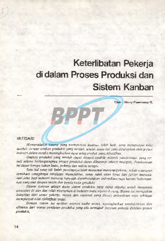 Poernomo R., Herry (1987) Keterlibatan pekerja di dalam proses produksi dan sistem Kanban. Majalah BPPT (XVIII): 2. pp. 14-24. ISSN 0216 - 6569