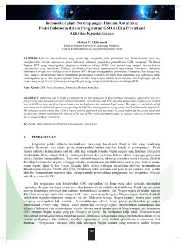 | Uncontrolled Keywords: | GSO, Posisi Indonesia, Privatisasi, Hukum Antariksa |