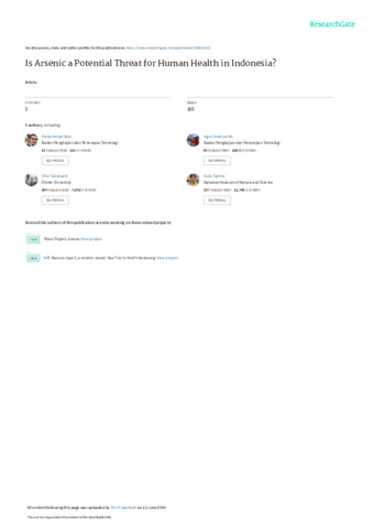 Ilyas, Muhammad and Sudaryanto, Agus and Anantasena, Yudi and Takahashi, shin and Tanabe, Shinsuke (2009) Is arsenic a potential threat for human health in Indonesia? In: Interdisciplinary Studies on Environmental Chemistry — Environmental Specimen Bank,. TERRAPUB, pp. 185-189.