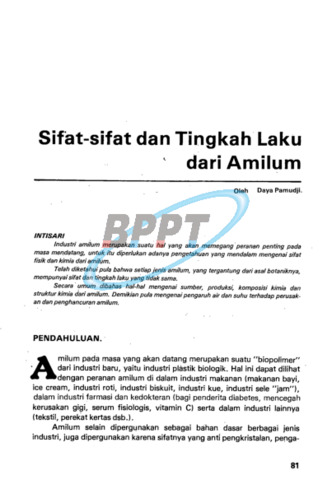 Pamudji, Daya (1986) Sifat-sifat dan tingkah laku dari amilum. Majalah BPPT (XIII): 5. pp. 81-93. ISSN 0216 - 6569