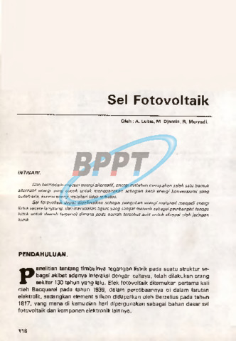 A. Lubis, . and M. Djamin, . and R. Mulyadi, . (1986) Sel fotovoltaik. Majalah BPPT (XIII): 8. pp. 118-130. ISSN 0216 - 6569