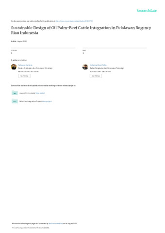 | Uncontrolled Keywords: | Sustainable design, Oil palm, Beef cattle, Integration, Pelalawan-Riau |
