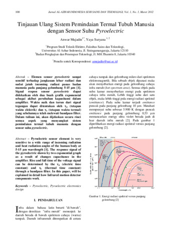 Mujadin, Anwar and Suryana, Yaya (2012) Tinjauan ulang sistem pemindaian termal tubuh manusia dengan sensor suhu pyroelectric. Jurnal Al-Azhar Indonesia Seri Sains dan Teknologi, 1 (3). pp. 100-104.