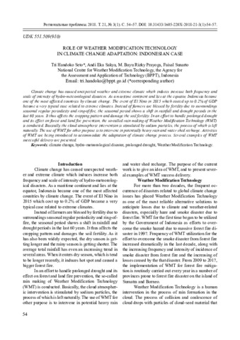 | Uncontrolled Keywords: | Climate change; hydro-meteorological disaster; Prolonged drought; Weather Modification Technology. |