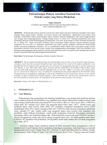 Perkembangan hukum antariksa nasional dan tindak lanjut yang harus dilakukan merupakan hasil kajian terhadap bahan hukum primer, sekunder, dan tersier melalui studi kepustakaan. Berdasarkan hasil analisis yang dilakukan, teridentifikasi bahwa perkembangan hukum antariksa nasional menunjukkan arah yang menggembirakan yaitu dengan telah diundangkankannya Undang-Undang Nomor 21 Tahun 2013 Tentang Keantariksaan serta telah dibentuknya Rencana Induk Penyelenggaraan Keantariksaan 2016-2040 yang terdapat di dalam Peraturan Presiden RI No. 45 Tahun 2017. Upaya yang harus dilakukan dalam membangun hukum antariksa nasional dilakukan dengan mengambil dua cara yaitu: (i) melakukan transformasi dan adopsi spesifik perjanjian internasional keantariksaan melalui instrument pengesahan (ratifikasi); dan (ii) pembentukan kaidah hukum baru yang sejalan dengan prinsip pemanfaatan antariksa untuk maksud damai, dengan tetap mengedepankan pertimbangan waktu dan kebutuhan serta diarahkan pada pembangun hukum antariksa nasional yang berdimensi public dan perdata untuk mengantisipasi potensi dampak yang ditimbulkan dari penyelenggaraan keantariksaan.