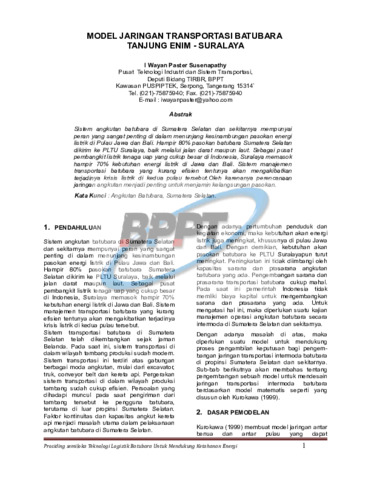 Susenapathy, I Wayan Paster Model jaringan transportasi batubara Tanjung Enim - Suralaya. In: Prosiding Semiloka Teknologi Logistik Batubara Untuk Mendukung Ketahanan Energi.