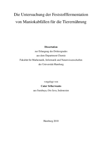 Sriherwanto, Catur (2010) Studies on the solid state fermentation of cassava bagasse for animal feed. Doctoral thesis, University of Hamburg.
